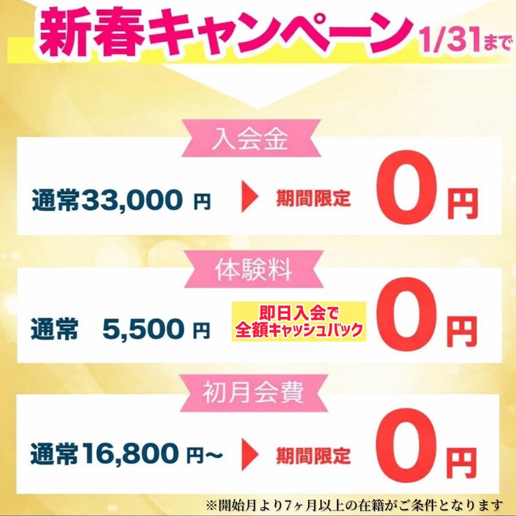 - 【体験料】5,500円 ※即日入会で全額キャッシュバック